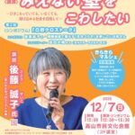 2025年11月17日 / 最終更新日時 : 2025年11月17日 okan お知らせ 【岐阜県】高山市で市民講座! 第13回 社会福祉法人 飛騨慈光会 市民講座 みえない壁をこわしたい ~ひきこもっていても、いなくても、溶け込める社会を目指して~ 飛騨高山に初めて行きます! お近くの方は是非、後藤誠子に会いに来てください♪   […]
